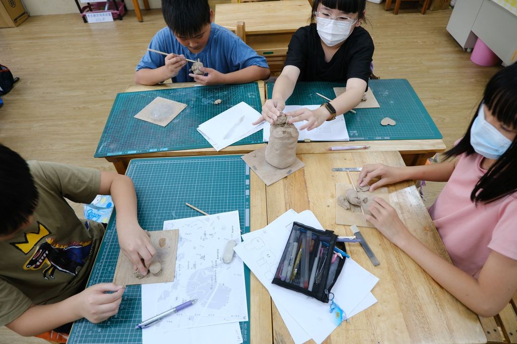 學生經由講師循序漸進地引導教學,打開陶塑的觸覺體驗,也培養孩子創作過程裡的耐心與專注力。